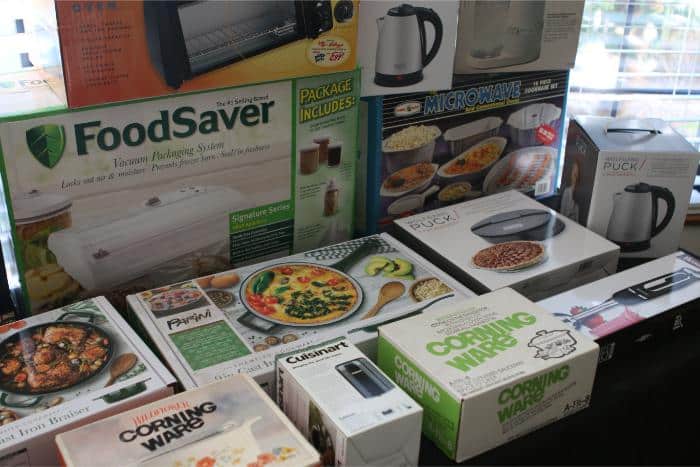 - Over 100 packaged items, including dishware, appliances, collectibles, and more – See photos
